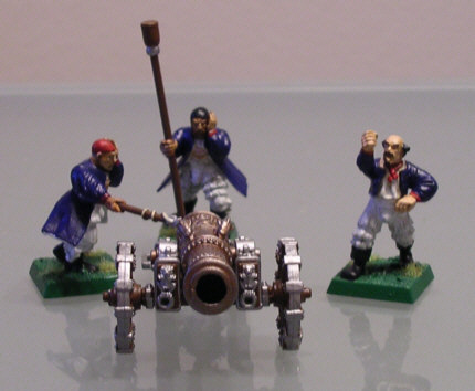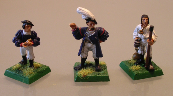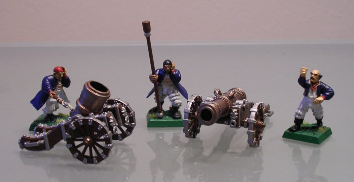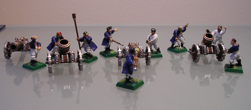 The artillerie's colours in the British army during the 17th and 18th century were mostly dark blue coats over white shirts and trousers. This set them apart from the "redcoats" for a long time.