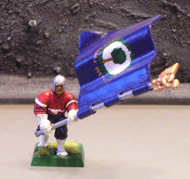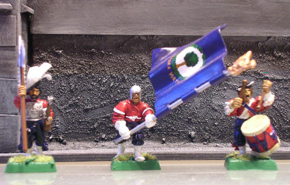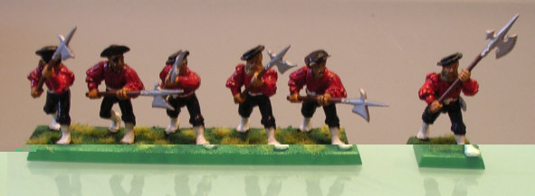 This unit consist of 35 halberdiers with full command and I frequently use parts of this regiment as detachements for other units. Like the rest of the army the halberdiers follow the colours of the British army of the 17th and 18th century. While the musician of this regiment does not wear a uniform as colourfull as that of the swordmens' musician, he can be clearly distinguished by his white sleeves.